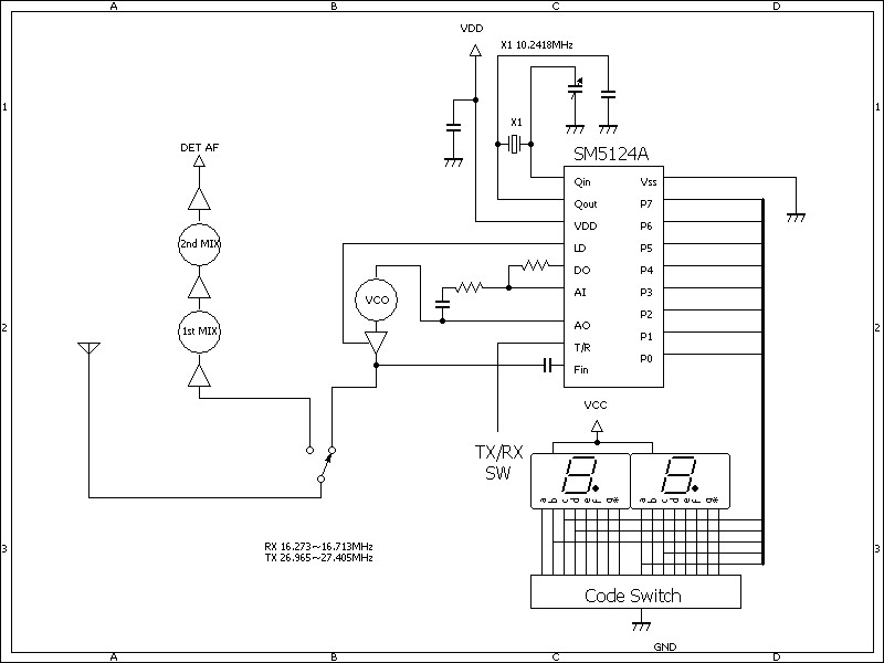 VCOが直接27MHZを発振させ、それを分周してリファレンスしています。直接27MHzの電波を作られてしまったらもう手も足も出ないですね。なんたってPDの分周比触ろうとしてもICが直接27MHzを扱ってしまえば、何も出来ません。と言うことでこの無線機は改造不可となります。解体予定です。