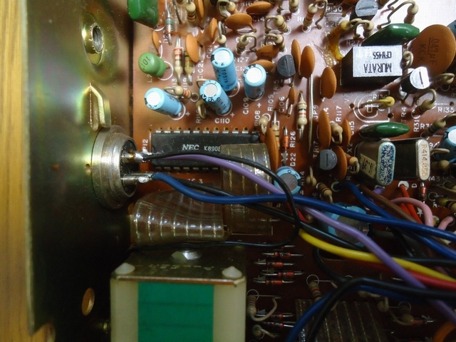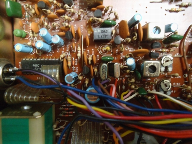 ICはNPC(日本プレジジョンサーキッツ)のSM5124Aが使われています。チャンネル設定がコードROMを使用しており、チャンネル信号をROMでデコードしています。さらには、チャンネル表示(セグメントの信号)をチャンネルデータとしているのでLEDと配線が共用。要は表示と連動しているのです。