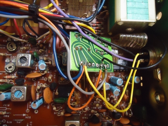 リレー追加して接点増幅します。MICピンで移動しないのは、MICの+側とPTTの-側としました。余計な作業を減らす為ですね。リレーの制御はMICのPTTを使えば良いので、電源スイッチの2次側から13.8Vをもらってリレーに入れてそのままMICのPTT+側に入れれば制御出来るようにします。。ジャンクの中に良い基板が有りましたので流用しました。リレーの回路は2回路なので、受信音対策とPTTの制御に使用しています。MICのPTTはリレーの制御に使うので、PTT回路は別に必要なのです。