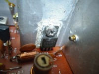 次に終段を交換しましょう。大抵この時代ですと 2SC1678が主流ですね。これは東芝のトランジスタでCB用に作られたものです。0.4w入力で3W出ますと資料にはあります。なのでちょっとイタズラ心でこの終段をPCの大きいモノにします。丁度NECの2SC1307と言う良く6mや10mのリニアに使われていたトランジスタを使用します。ちなみに一つ下の2SC1306は2SC1628と互換性があります。昔のRJX-601の終段にも使われていますね。1678はFmaxが100MHz位なので6mでも使用出来ると思います。1307はパラで27MHzだと30W位は出たと思います。そのリニアの残骸だと思いますが1678と交換します。このトランジスタは0.4w入力で調整次第で10w以上出ますので放熱はきちんとしないとすぐコケます。放熱には注意が必要です。