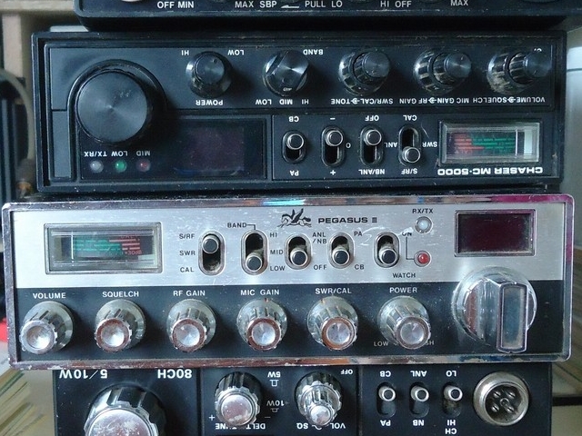 そこで出てきたのがアメリカへ輸出している無線機の逆輸入、横流しです。当初は23CHでAM 4Wの出力。外部アンテナが必要でアンテナを取り付けなければ使用出来ないものです。最初の頃は23ch機が支流でした。23ch機の周波数は27.965~27.235MHzまで(21,22,23chは変則で周波数が入れ替わるので27.235MHzは間違っているかも)です。10KHzセパレーションで上がっていきます。アメリカの法改正でその後40chの無線機が登場。、沢山のCB無線機が出回りました。そして後には80ch、160ch、240chの無線機まで登場しています。実際アメリカでも40ch以外は違法となりますが・・・。