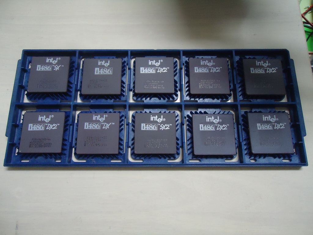 i80486DX2-50MHz CPUです。途中を飛ばしましたが、有ったはずのCPUがトレイごと行方知れずとなってしまいました。まぁそのうち出てくるでしょう。