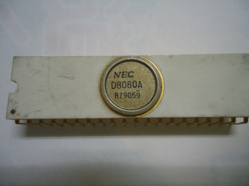 NECの元祖CPU μPD8080Aです。当時は1個数万円もしましたので当然貧乏人には買えない代物でした。